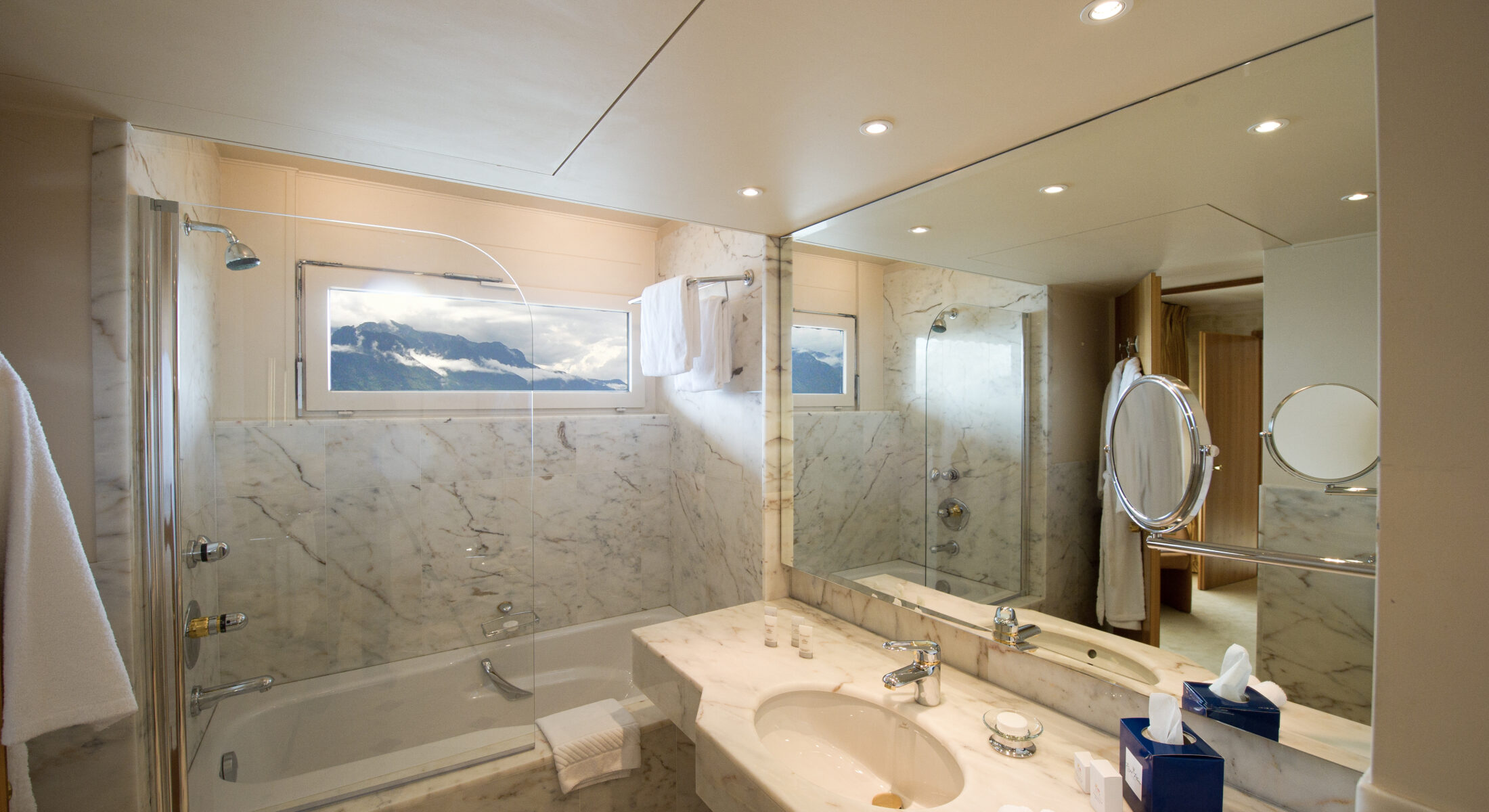 Die Präsidentensuite ist dank ihrer atemberaubenden 180°-Panorama-Aussicht über den Genfersee zweifellos eine der schönsten Suiten an der ganzen Waadtländer Riviera. Die 160 m² große, luxuriöse Wohnfläche wird durch eine 90 m² grosse möblierte Privatterrasse mit außergewöhnlichem Panorama ergänzt, & wird damit höchsten Ansprüchen gerecht. Die Suite besteht aus einem Großen Empfangsraum, einem kleinen Wohnzimmer mit Essbereich, einer voll ausgestatteten amerikanischen Küche, zwei Schlafzimmern & Bad sowie einem separaten Duschraum & einem Gepäckraum. Der direkte Zugang zu den Räumlichkeiten mit dem Lift & die mögliche Anbindung an eine weitere Junior-Suite runden die Eigenschaften dieser außergewöhnlichen Suite ab.