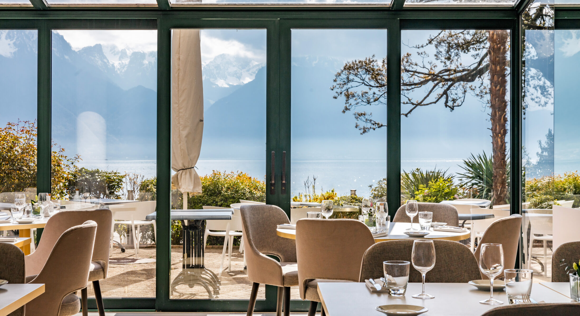 In summer, enjoy our large shaded terrace along the flower-lined quays of Montreux & a few steps from Lake Geneva.