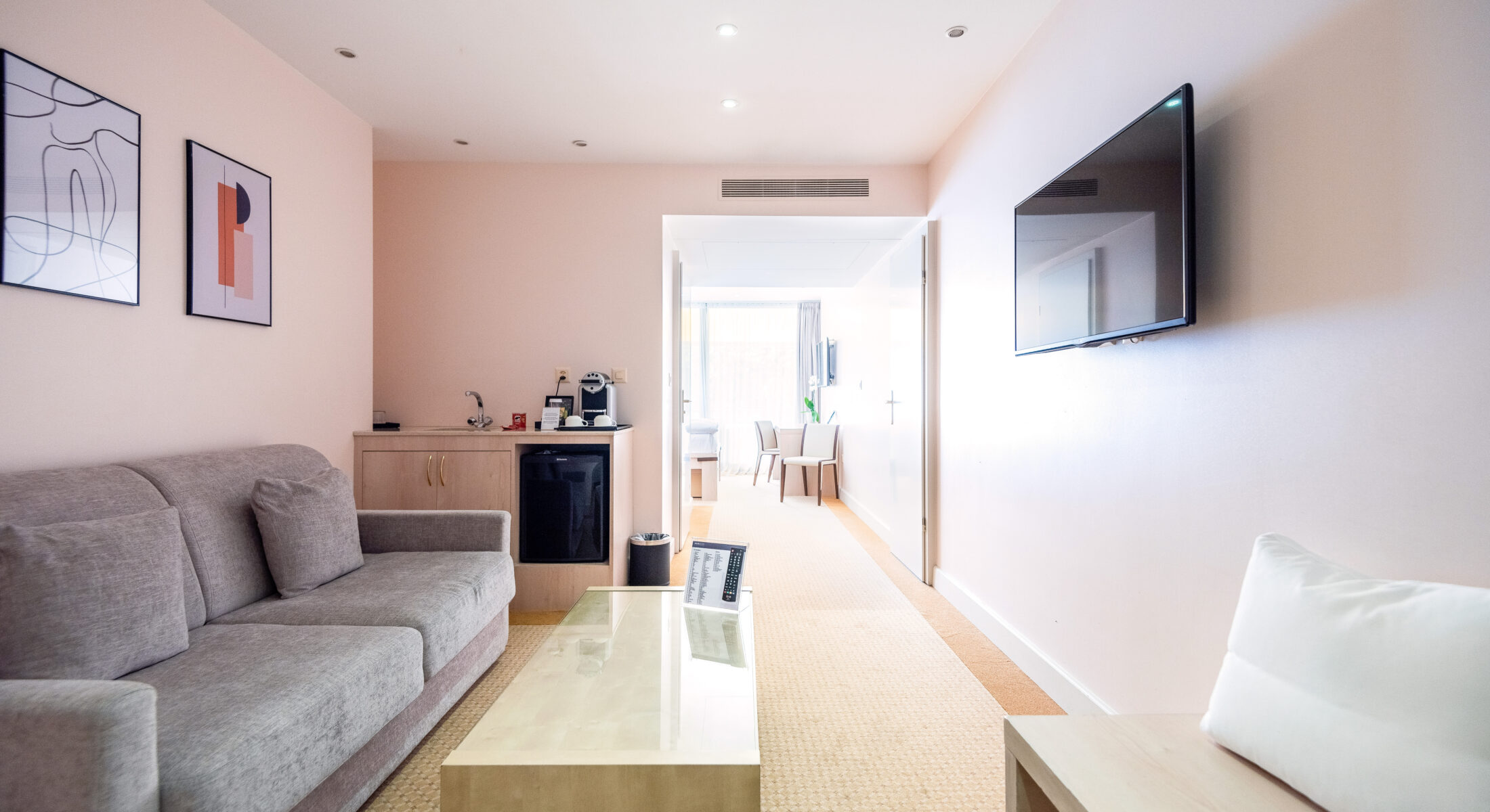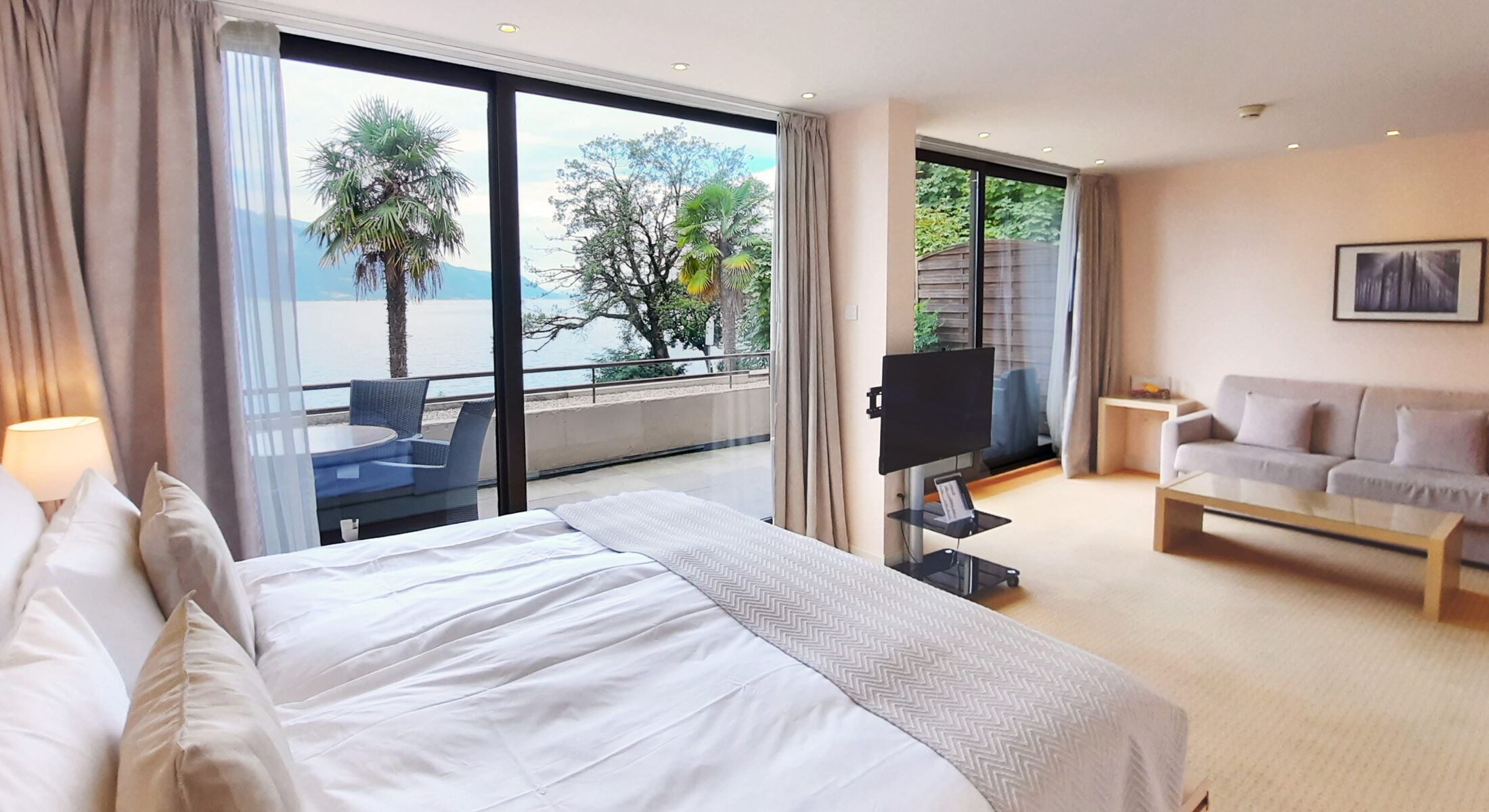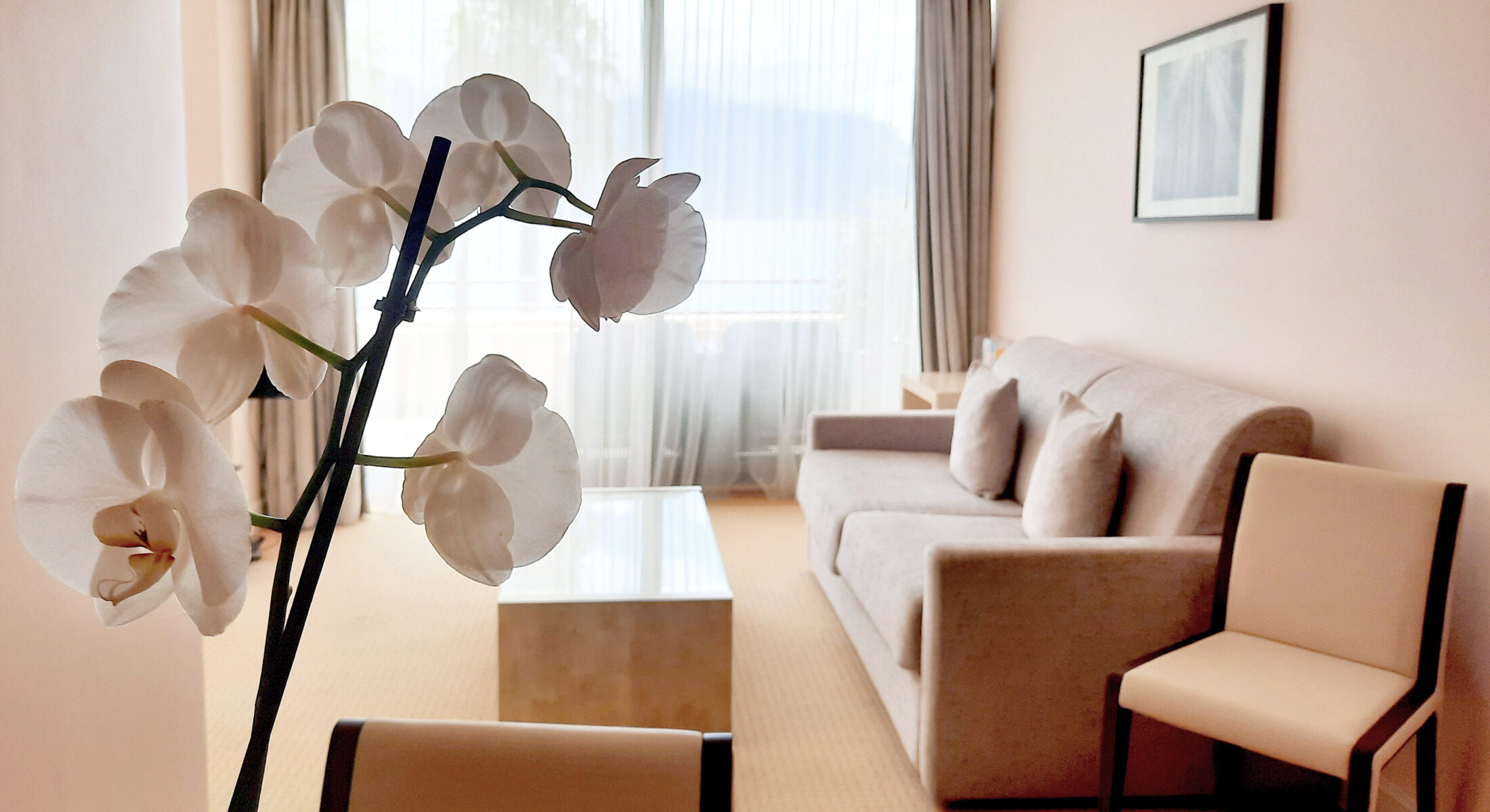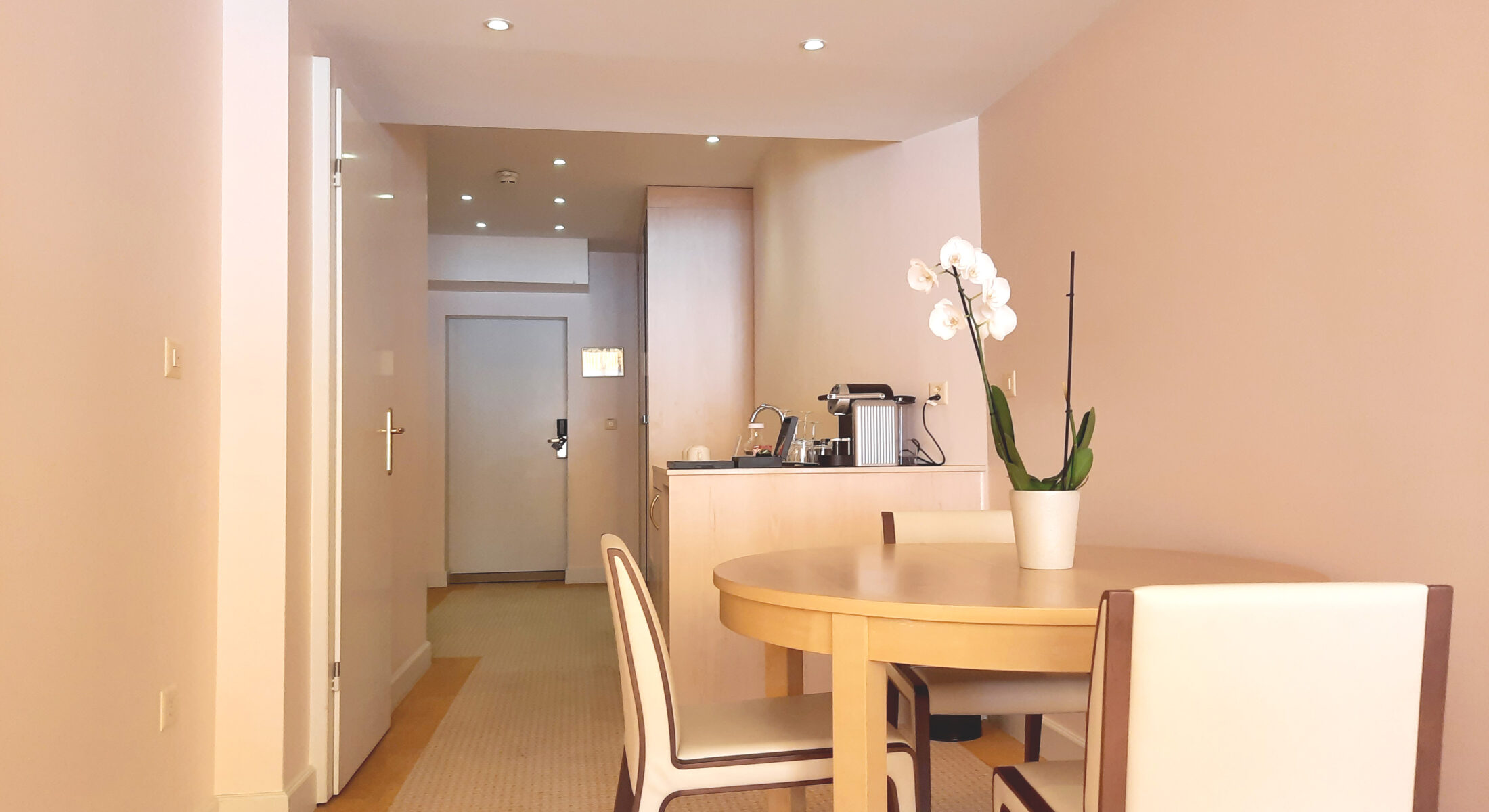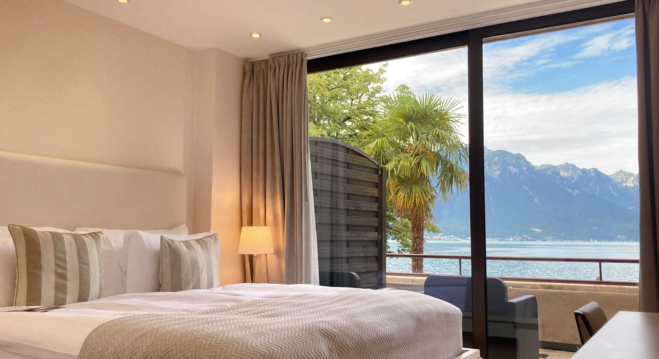 The White Junior suites are located on the second floor of the building and are all arranged slightly differently. They enjoy beautiful views over Lake Geneva & the flowered promenade of Montreux. Spacious & equipped with all modern conveniences, these suites will meet all your expectations & allow you to enjoy the scenic view thanks to a small private furnished terrace. Each of these suites has a Nespresso coffee machine & we are pleased to offer you four capsules per day & an assortment of hot drinks (instant coffee & tea). As some of the White Junior suites are communicating, please do not hesitate to contact us to book your family stay.